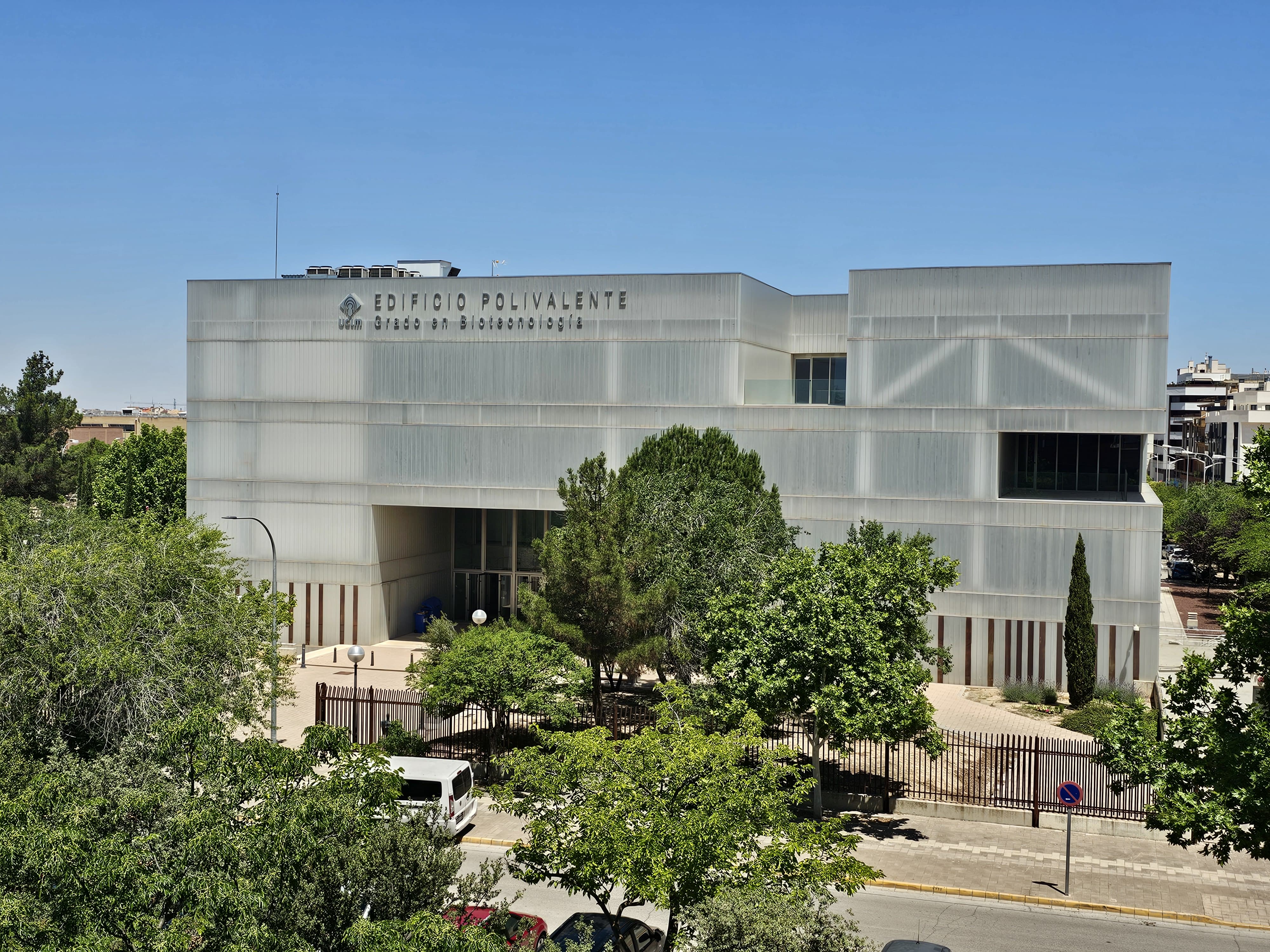 El edificio Polivalente cuenta con cuatro plantas dedicadas a diferentes usos. La Escuela utiliza las instalaciones de las plantas 2 a 4, estando la planta baja dedicada a los Servicios Generales de la Universidad. En este edificio la Escuela cuenta con 10 despachos destinados a profesorado y personal técnico, de gestión y de administración y servicios, 7 aulas dedicadas a la docencia del Grado en Biotecnología y dos salas de ordenadores. Para las prácticas de esta titulación, la Escuela cuenta en este edificio con siete laboratorios completamente equipados con material recientemente adquirido y dos salas de cultivo. El edificio también cuenta con una sala de estudio con 55 puestos y un salón de actos con aforo para 286 personas.