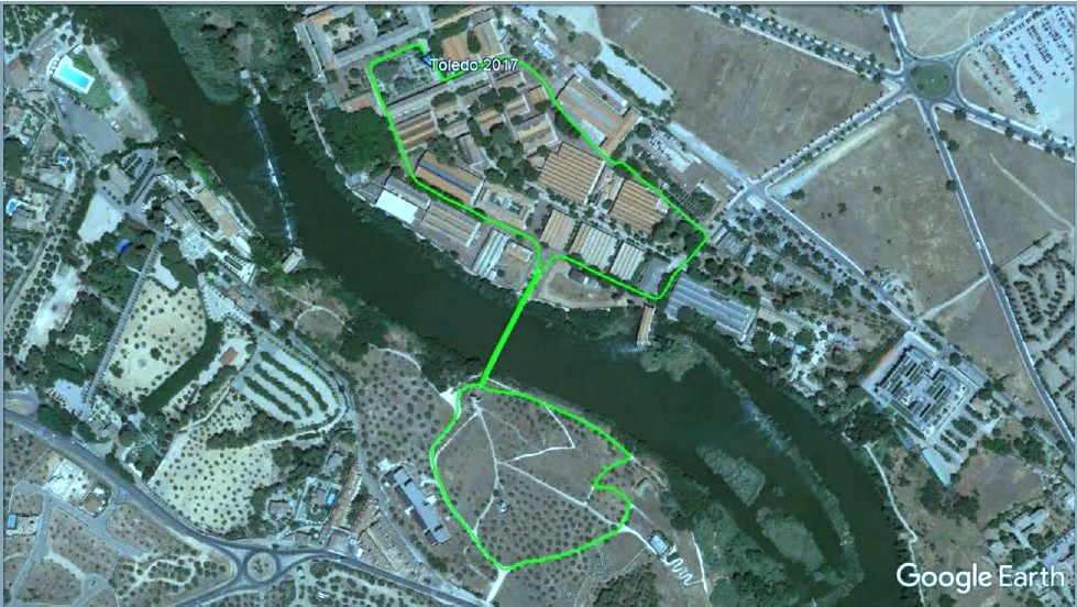 Transcurre entre el recinto de la Fábrica de Armas y el parque de polvorines unidos por un puente sobre el río Tajo
