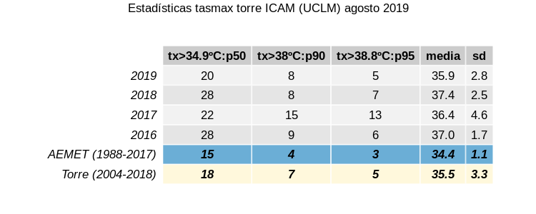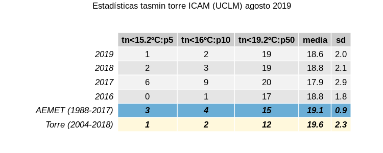 Estadísticas Agosto 2019 Tmax/Tmin