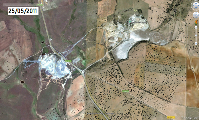 Vista aérea de las minas de San Quintín antes del comienzo de las labores de restauración.