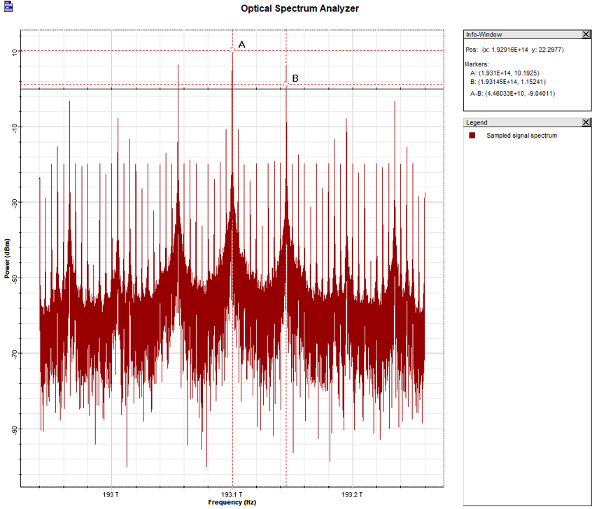 A continuación, se aprecia como se verían las respuestas del espectro óptico de uno de los sistemas QKD simulados.