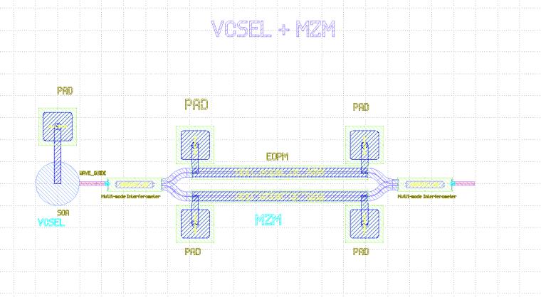 Diseño del VCSEL + MZM en KLayout.