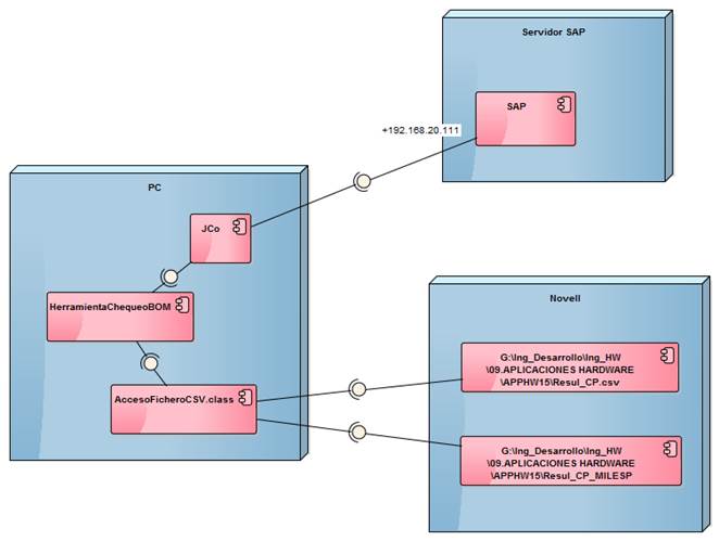 El acceso a la base de datos Novell, de donde se recopila un pequeña parte de la información utilizada en la herramienta, y el enlace a SAP, a través del conector Java JCo. Este enlace es el más importante puesto que de él se extrae la mayor parte de la información de la base de datos principal de Tecnobit.