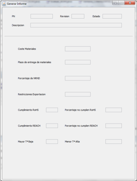 – Informe (Recopilación información). La tercera parte de la aplicación muestra un informe de la BOM, en el que se detalla la información más relevante según los criterios de los ingenieros hardware de la empresa.
