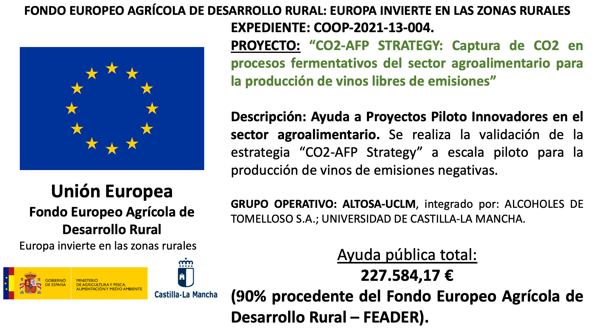 🌿 EXPEDIENTE: COOP-2021-13-004 🍷 PROYECTO: "CO2-AFP STRATEGY: Captura de CO2 en procesos fermentativos del sector agroalimentario para la producción de vinos libres de emisiones."