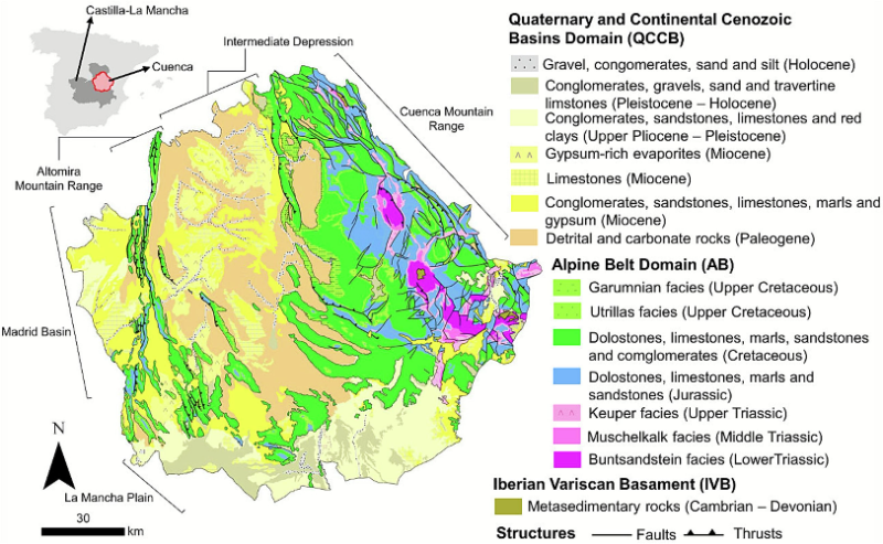 Mapa geológico simplificado de la provincia de Cuenca.