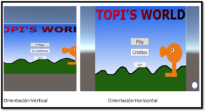 Después nos encontramos con la primera escena ya del videojuego, que se trata del menú principal. En él dependiendo de cómo estemos jugando, si con orientación vertical u horizontal veremos las cosas, de una forma u otra. Se recomienda la orientación horizontal en la mayoría de móviles y dispositivos, pues no gozan de la resolución óptima para ver todo en la orientación vertical.