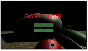 En todos los minijuegos al perder la partida aparece la siguiente interfaz, que permite reiniciar el minijuego (Reiniciar Partida) o volver al pueblo (Salir).
