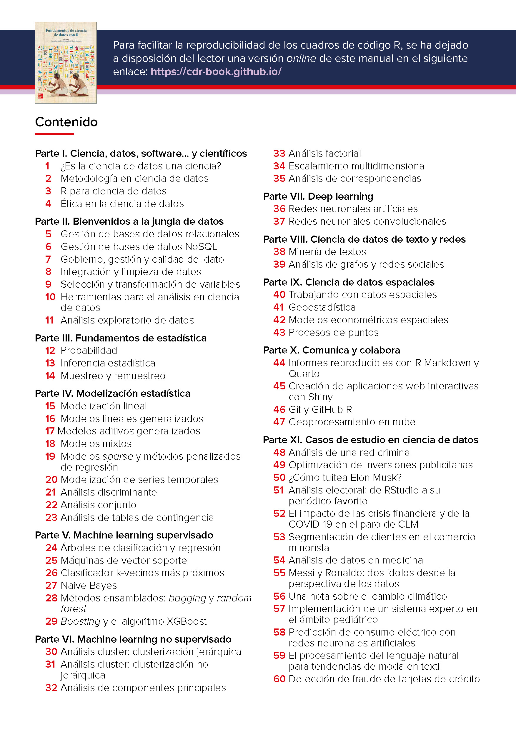 Para facilitar la reproducibilidad del código R, se ha dejado a disposición del lector una versión online de este manual en el siguiente enlace: https://cdr-book.github.io/