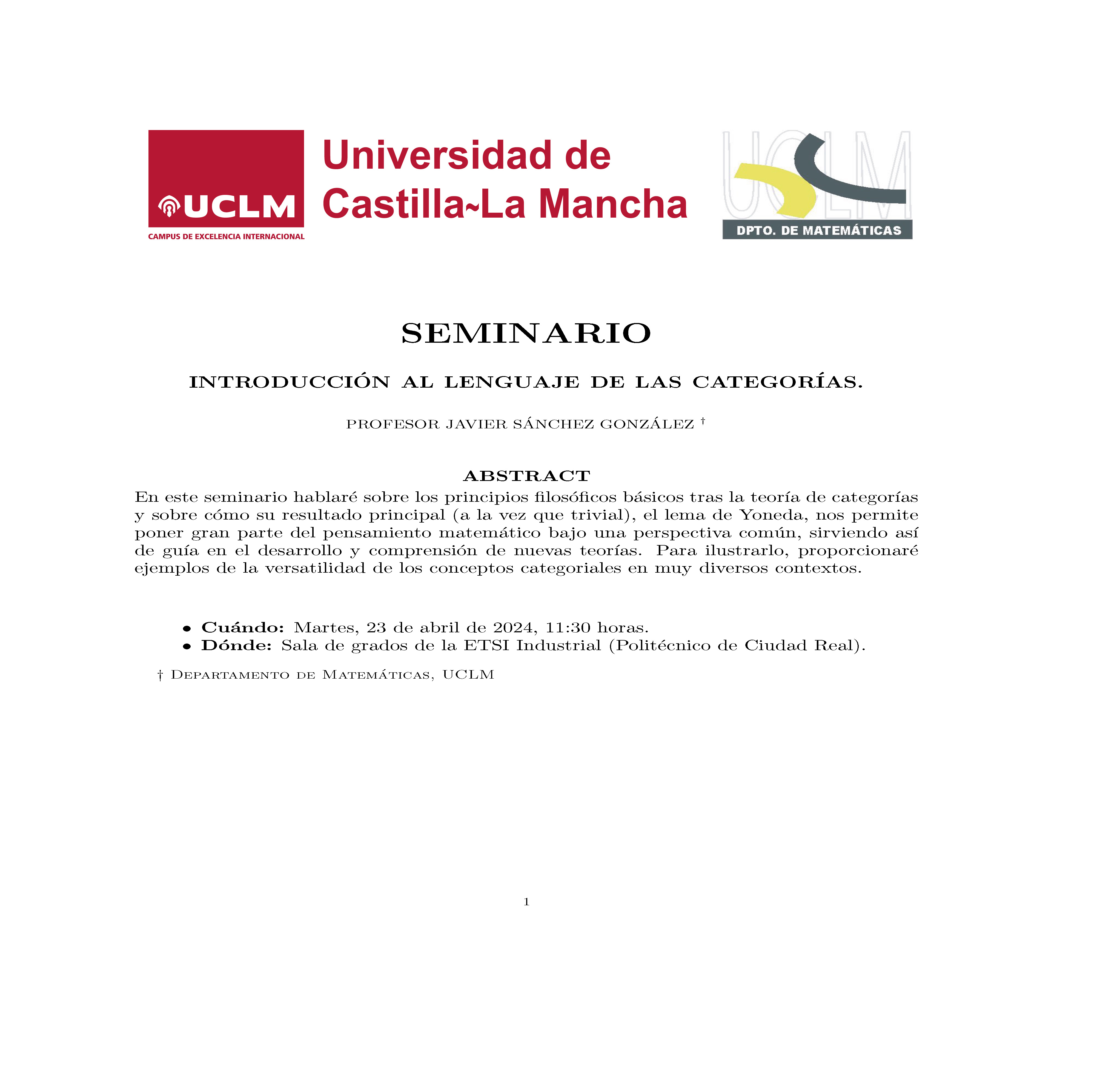 Próximo Seminario de nuestro Profesor Javier Sánchez González y