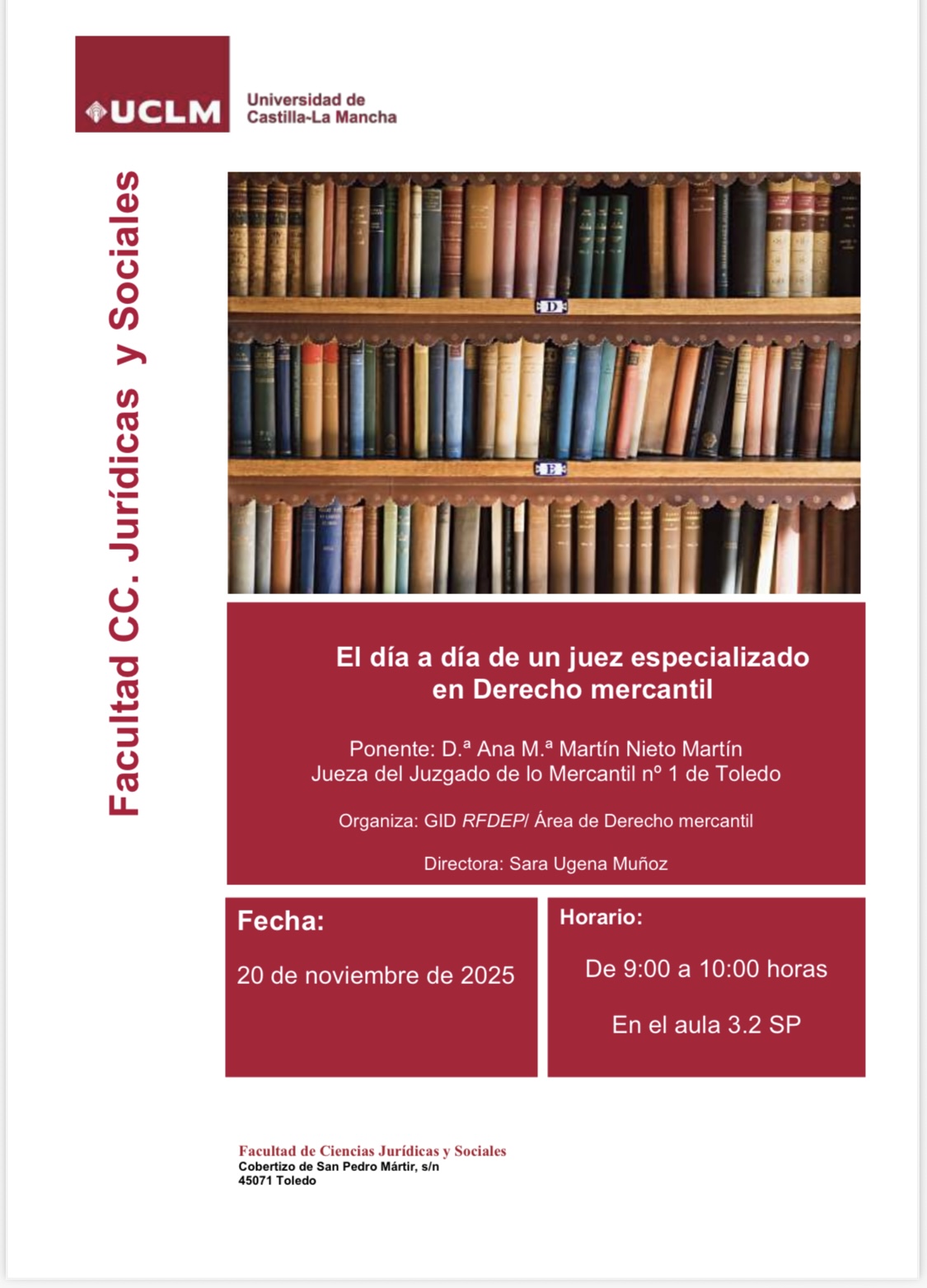 El próximo 20 de noviembre de 2025 tendrá lugar la ponencia El día a día de un juez especializado en Derecho Mercantil.