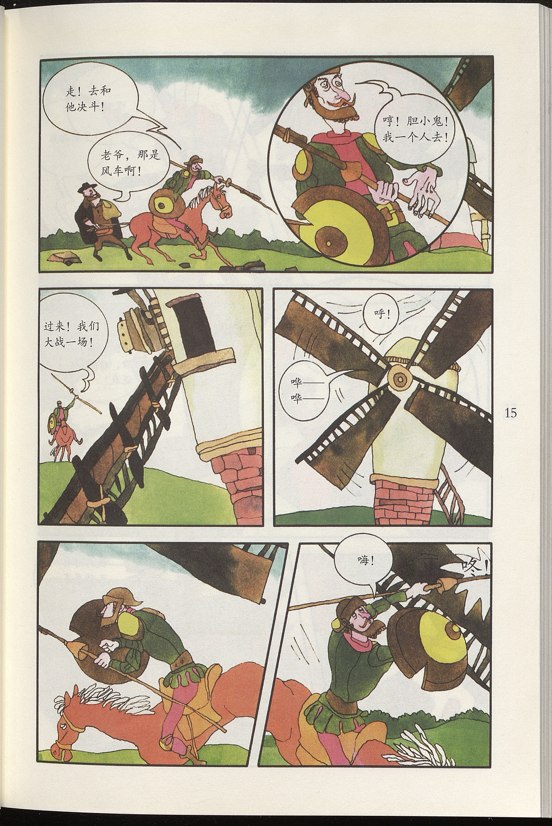 No así su obra maestra, que permanece viva y vital a través de los siglos; y que merece ser conocida por todos. Es con tal intención que hemos publicado la segunda edición de este «Álbum de historietas» en el que se resume la historia de Don Quijote sin alterar el texto original. Las ilustraciones son de Bernardini, quien con su ecléctica sensibilidad de artista, ha sabido capturar a los personajes en sus aspectos humorísticos y humanos. Los dibujos reproducen fielmente los hechos narrados en el texto; las figuras saltan vivas de los cuadros y de inmediato se hacen accesibles y familiares.