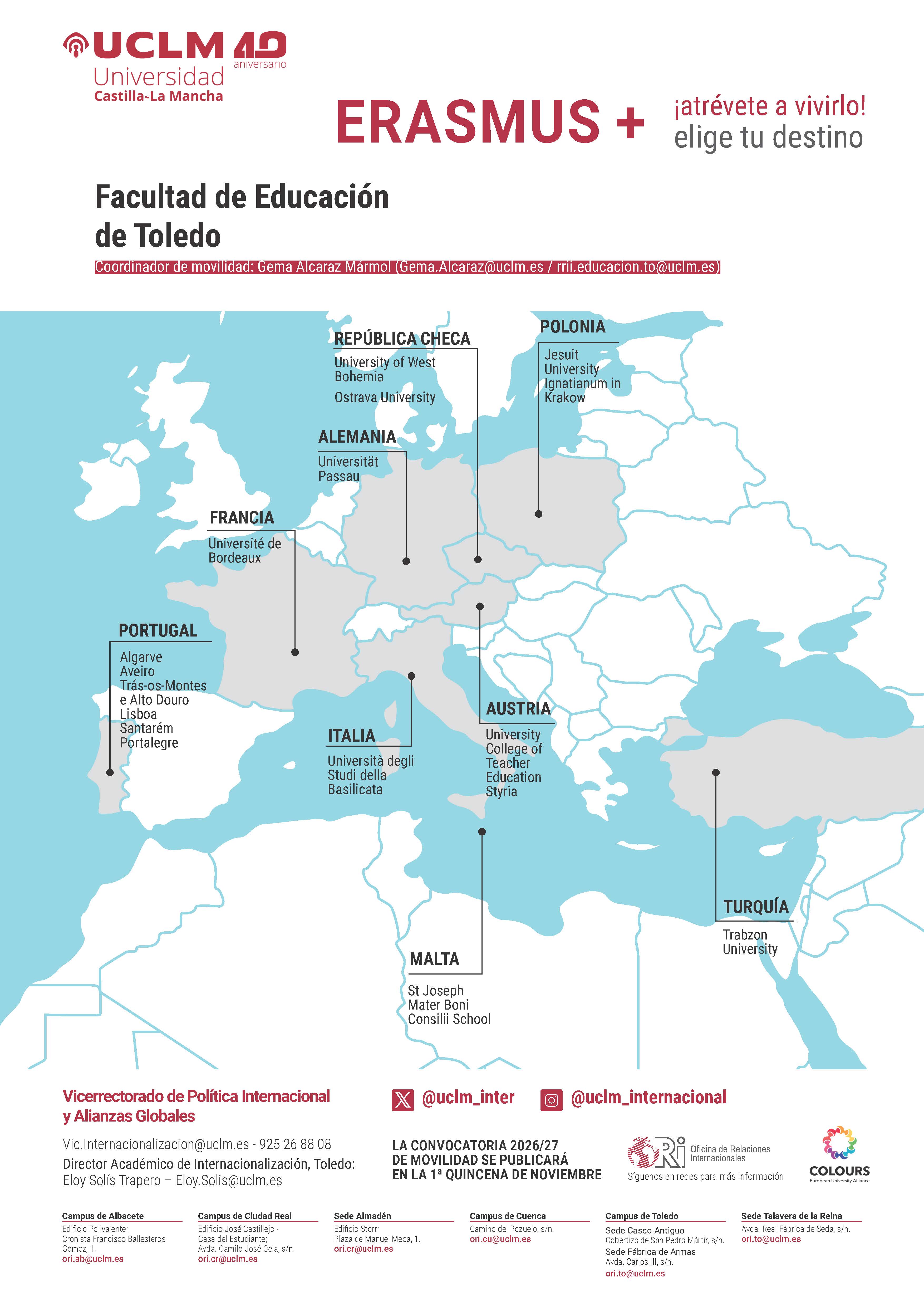 La Oficina de Relaciones Internacionales (ORI) se encarga de gestionar todas las actividades de índole internacional que conciernen a la Universidad de Castilla-La Mancha (UCLM).