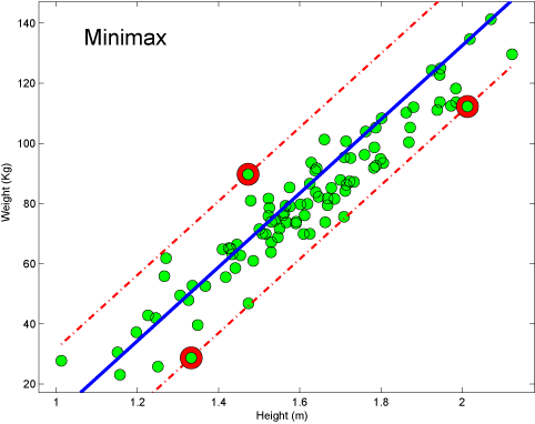 This example is dedicated to explain regression models and some duality concepts. First the three most common methods, least squares, minimax and least absolute values are described and the last two stated as linear programming problems. The dual of the minimax problem is obtained and its mathematical interpretation is given. Finally, an example of simulated data with three outliers is given and the three methods used to fit the data. The lesson ends with the interpretation of the results of the example.