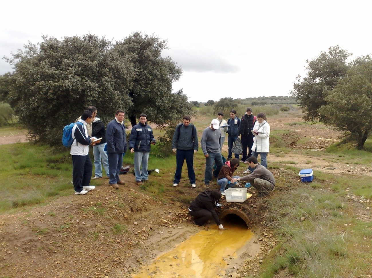 Toma de muestras de DAM procedente de la galería de drenaje, unos 500 m aguas debajo de la galería (abril de 2010)