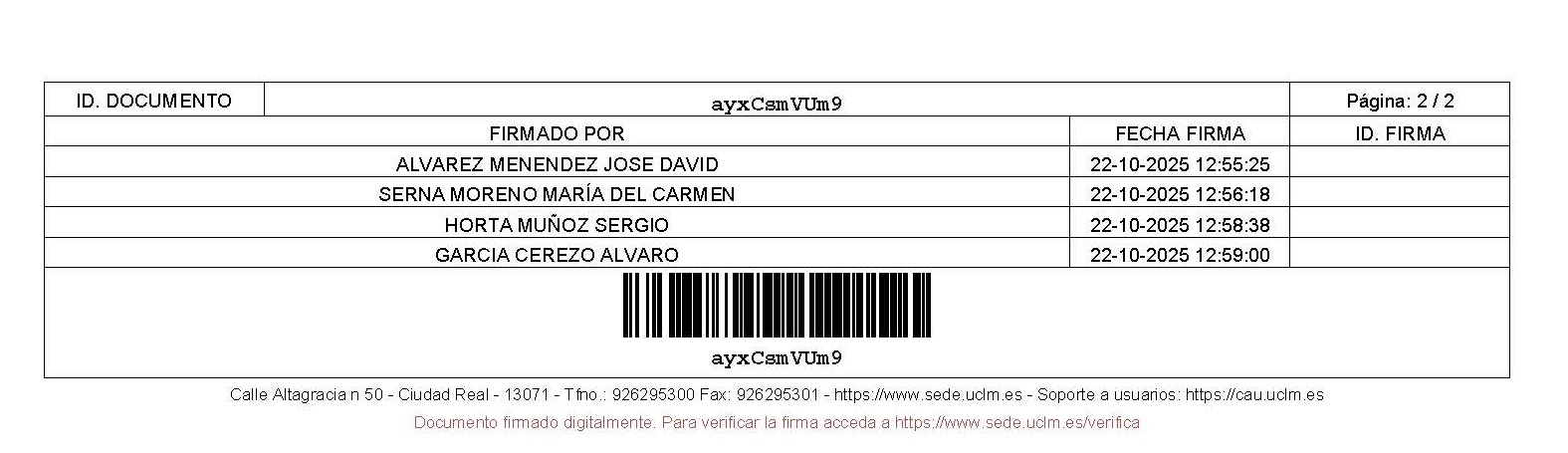 El sitio web de la UCLM utiliza cookies propias y de terceros con fines técnicos y de análisis, pero no recaba ni cede datos de carácter personal de los usuarios. Sin embargo, puede haber enlaces a sitios web de terceros, con políticas de cookies distintas a la de la UCLM, que usted podrá aceptar o no cuando acceda a ellos.