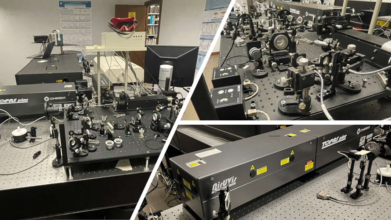 It is equipped with a dual-chamber glovebox featuring an integrated thermal evaporator, a spin coating system, and a spectro-goniometer for the characterization of OLEDs.