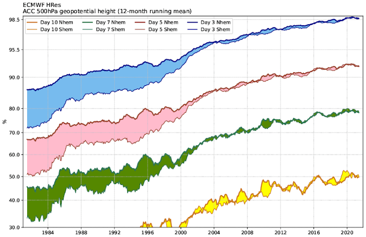 Sin embargo, las predicciones meteorológicas tienen un objetivo más importante y han demostrado una increíble mejora en los últimos 40 años.
