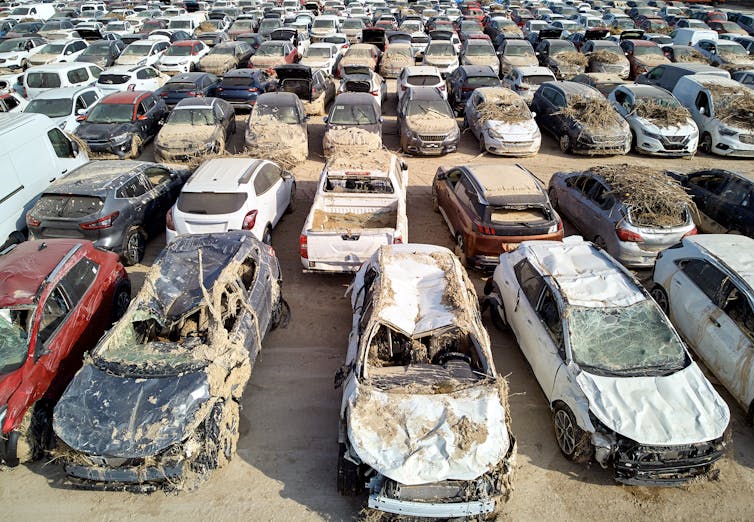 Coches perjudicados por la gota fría que afectó a Orihuela en septiembre de 2019. Shutterstock / Alex Tihonovs