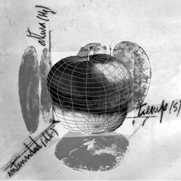 Representación homeomórfica que genere un proceso de sedimentación tal, que haga posible establecer analogías entre el sonido producido y el volumen interpretado. Los valores de los 359 vértices de la malla que definen el límite externo del objeto, leídos a lo largo de las tres direcciones del espacio natural, simultánea y consecutivamente. Modulación sonora de miles de nudos en el cordel de un Quipus. Fluctuación de datos rigurosamente interpretados que evocan en la intemporalidad de la memoria un vago reflejo de la esencia de una forma, articulación temporal que recrea en el alma el sonido de un concepto, presentación de la naturaleza sonora del espacio que define una manzana, símbolo de la totalidad y del conocimiento prohibido.