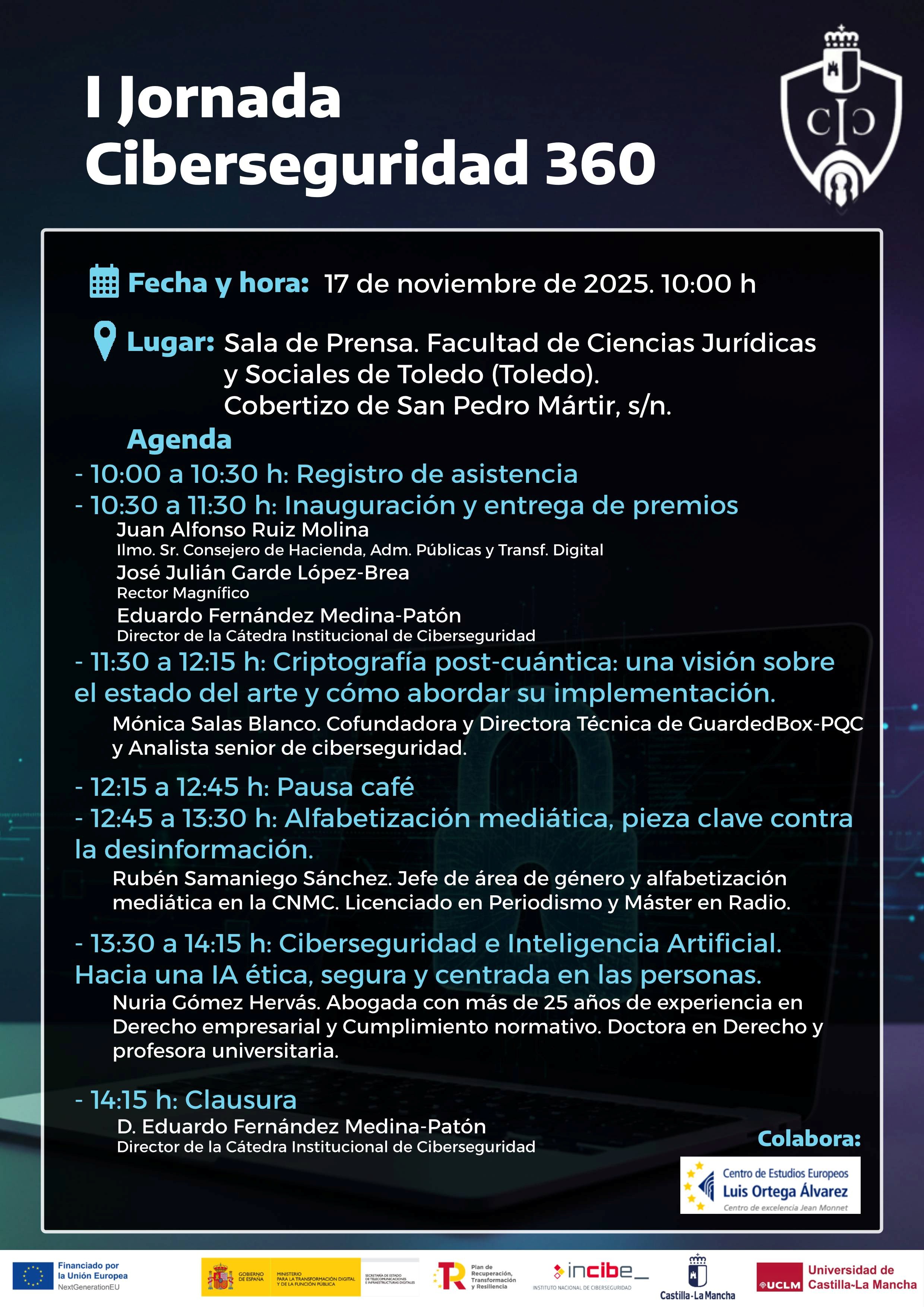 El próximo 17 de noviembre de 2025, la Facultad de Ciencias Jurídicas y Sociales de Toledo (UCLM) acogerá la I Jornada Ciberseguridad 360, un encuentro dedicado a explorar los desafíos más actuales en protección digital.