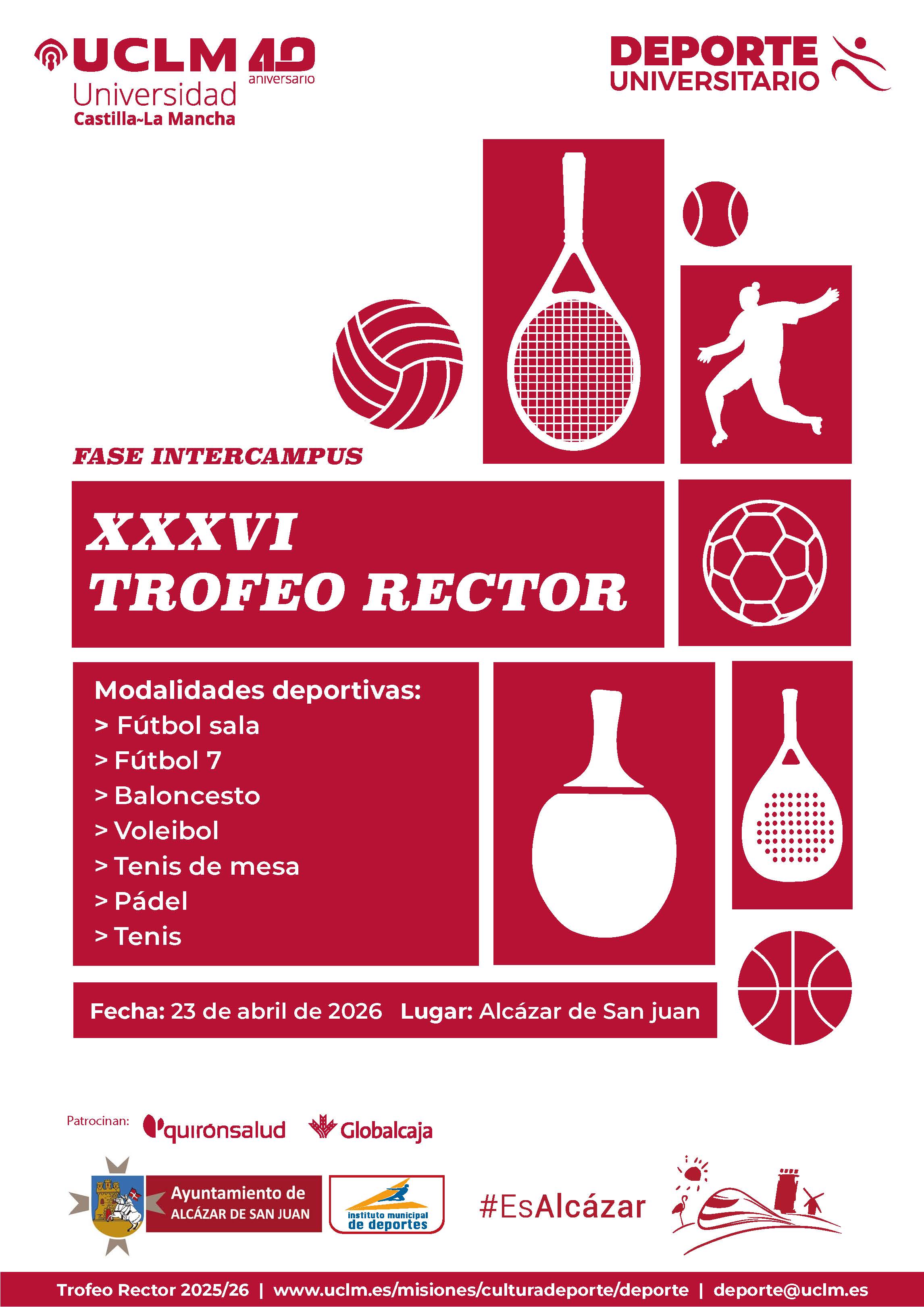 Durante el curso 2025/2026, el Servicio de Deportes de la UCLM, convoca el XXXVI Trofeo Rector como actividad competitiva, tanto en modalidades de equipo como  modalidades individuales.