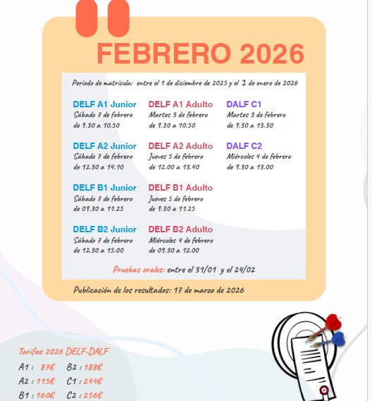 - Niveles DALF C1 y C2 Adultos: en Albacete, Ciudad Real, Cuenca y Toledo
