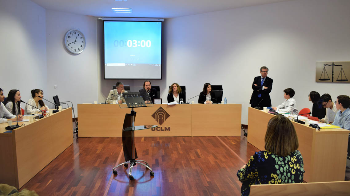 Un año más, la Sala de Vistas del edificio Melchor de Macanaz ha sido el escenario para celebrar la Olimpiada de Debate Jurídico Empresarial de la Universidad de Castilla-La Mancha (UCLM), que en su tercera edición proclamó como ganador al IES Ojos del Guadiana, de Damiel (C. Real). En la fase final, el primer clasificado se enfrentó al equipo finalista de Albacete, Los Olmos.